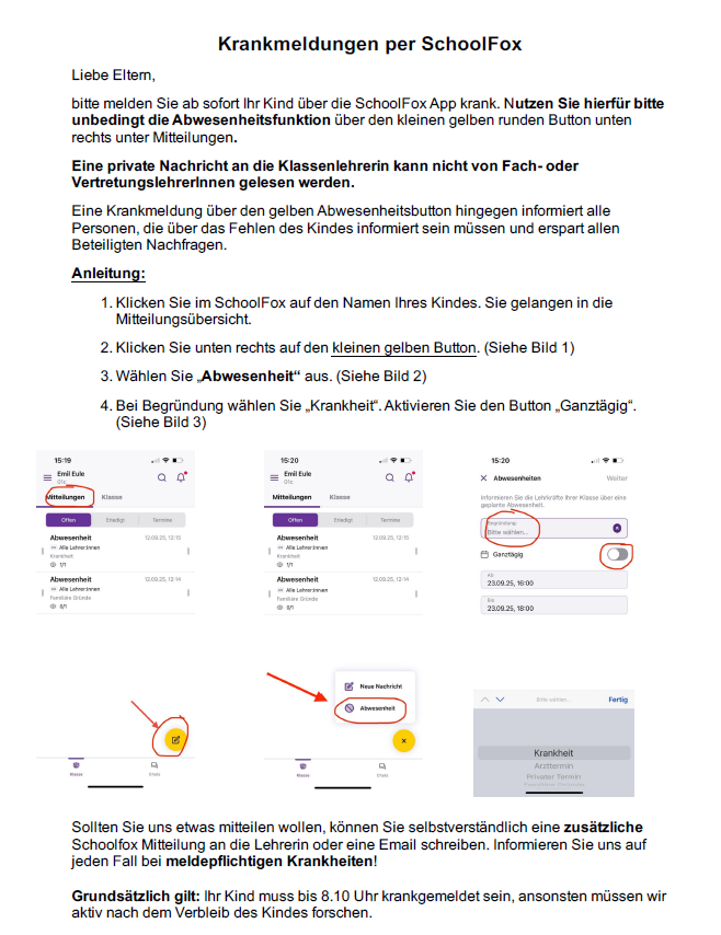 Krankmeldungen/Abmeldungen